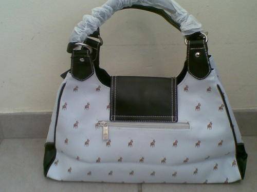 **PERFECT GIFT**- WHITE/BROWN POLO HANDBAG, ORIGINAL WITH CERTIFICATE AND DUST BAG-CENTRAL ZIP CLOSURE AS WELL AS BACK ZIP, FULLY LINED INNER,, HEIGHT 24CM, BASE LENGHT-42CM