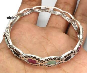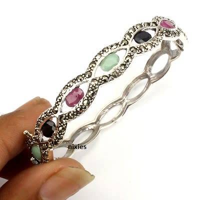 PRODUCT NAME | : | MARCASITE, RUBY, EMERALD AND SAPPHIRE (NATURAL) 14K WHITE GOLD COATING 925 SILVER BRACELET |