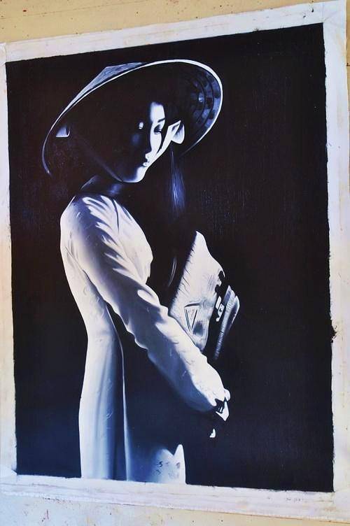 Monochromatic Woman. From an artists' collective in Vietnam. Unframed.