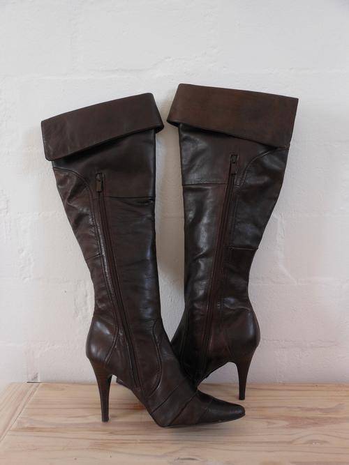 *LUELLA* GENUINE LEATHER COLLECTION BROWN STILETTO HEEL LADIES BOOTS - SIZE 6