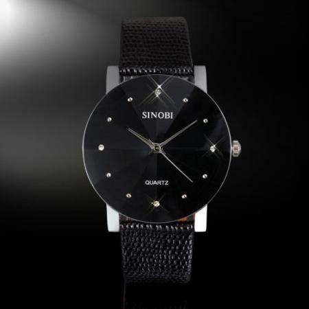 "LUXURIOUS" SINOBI GENTS ELEGANT SLIM LINE WATCH WITH BLACK LEATHER STRAP
