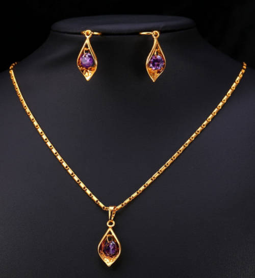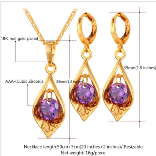 Luxury Cubic Zirconia Jewelry Set 18K Yellow Gold Plated Purple Crystal.ideally suits for party,for wedding,engagement, etc...