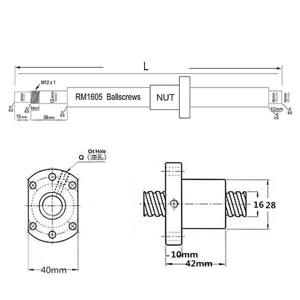 + Machifit Ball Screw SFU1605 850mm Ball Screw With SFU1605 Single Ball Nut for CNC