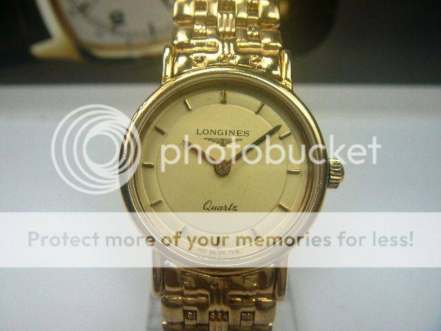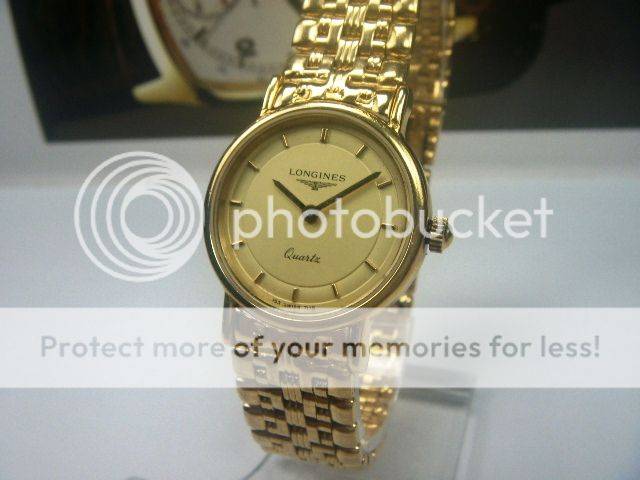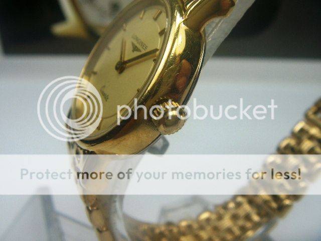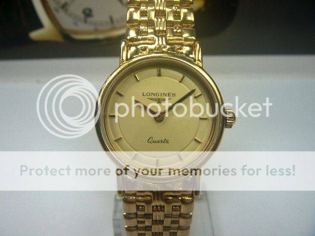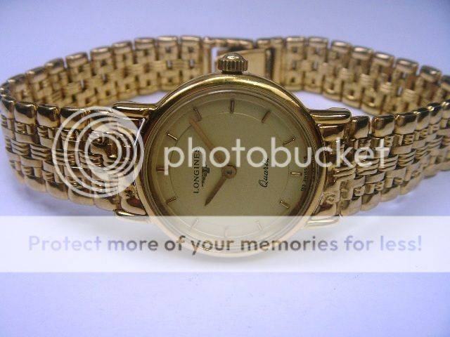 PRE-OWNED LONGINES QUARTZ LADIES WATCH GOLD PLAQUE CASE MEASURING APPROXIMATELY 20MX28MM, WITHOUT CROWN AND FROM LUG TO LUG GOLD DIAL WITH RAISED GOLD MARKERS GOLD HANDS GOLD CROWN ORIGINAL CRYSTAL NO CALENDAR PLAIN BEZEL PRECISE LONGINES QUARTZ MOVEMENT, WORKS AND KEEPS CORRECT TIME STAINLESS STEEL BACKCASE, HAS MARKINGS LONGINES GOLD-TONE BRACELET, WILL FIT A 6.25 INCH WRIST APPROX. NO BOX OR PAPERS BUT GUARANTEED AUTHENTIC OR MONEY BACK!