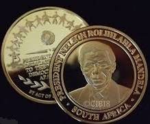 1 X President Nelson Mandela Gold Plated Medallion Coin Encapsulated