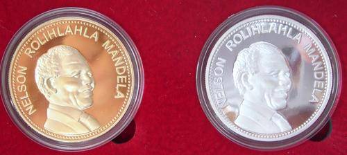 **Stunning Mandela Crown Size Proof Medallains - Gold Plated and Silver .925 **