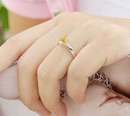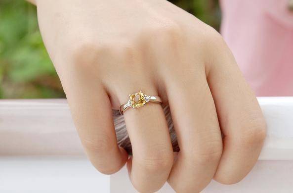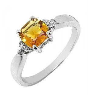 "MARKET VALUE R4950" NATURAL YELLOW CITRINE & DIAMOND RING IN 14K SOLID WHITE GOLD