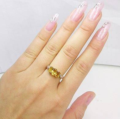 "MARKET VALUE R6350" 3.00 CT NATURAL YELLOW CITRINE & DIAMOND RING IN 14K SOLID WHITE GOLD