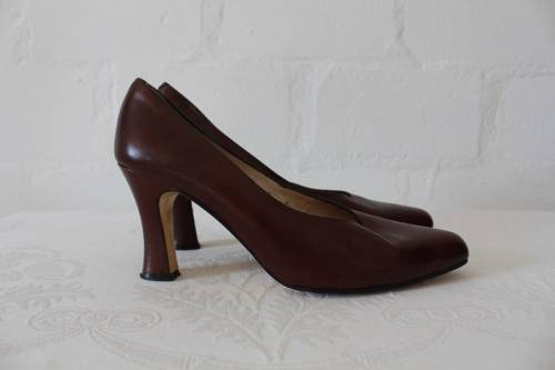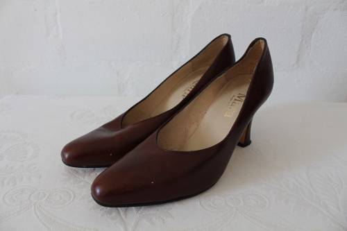 Gorgeous authentic vintage Max Mara luxury designer brown chunky heel full leather shoes.