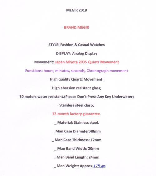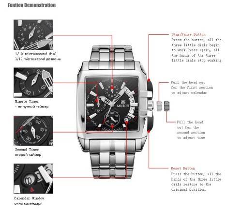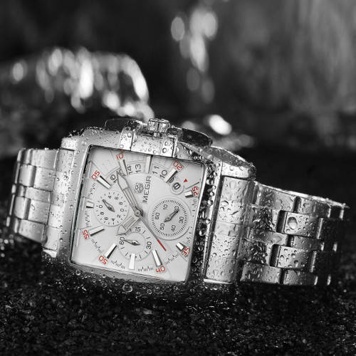*** Megir Brand Top Watch** White Square Luxury Men Quartz Wristwatch CHRONOGRAPH & 24 hou