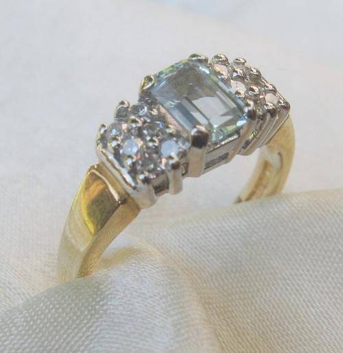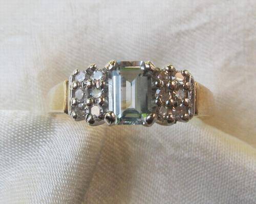 ***MONEY-BACK GUARANTEE*** A FINE 9CT YELLOW GOLD AQUAMARINE & DIAMOND RING SIZE L
