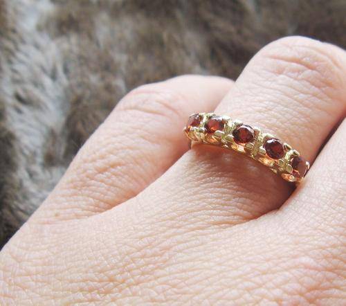 ***MONEY- BACK GUARANTEE*** FINE 10KT YELLOW GOLD 5 STONES GARNET RING