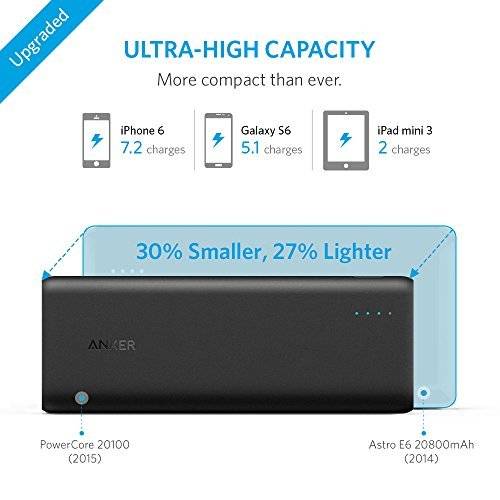 Enough power to keep you going for days. Charge an iPhone 6 seven times, a Galaxy S6 five times or an iPad mini twice.