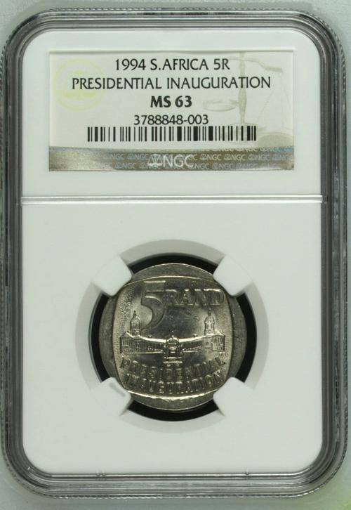 **MS63**RSA 1994 INAUGURATION MS63 NGC GRADED COIN** BUILDINGS SHOWING FRONT** RARE!!