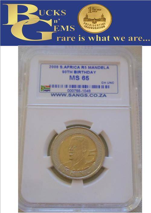 2008 MANDELA 90TH BIRTHDAY R5 COIN R5 MS65 SANGS GRADED