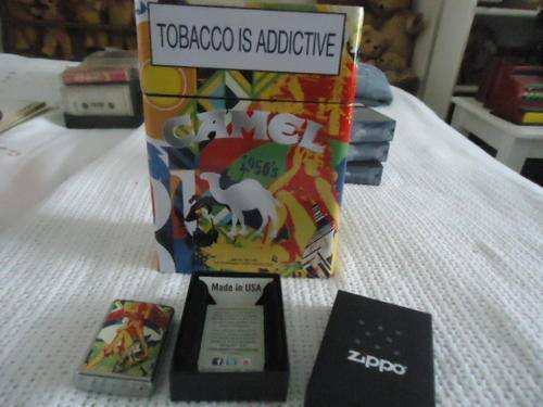 THIS CENTENARY CAMEL TIN, WITH IT'S "AS NEW" ZIPPO LIGHTER, WHICH HAS NOT BEEN USED, ONLY THE 3 PACKS OF CAMEL CIGARETTES HAVE BEEN SMOKED, SO THIS ITEM WILL BE SUPPLIED WITH THREE EMPTY CIGARETTE PACKETS.