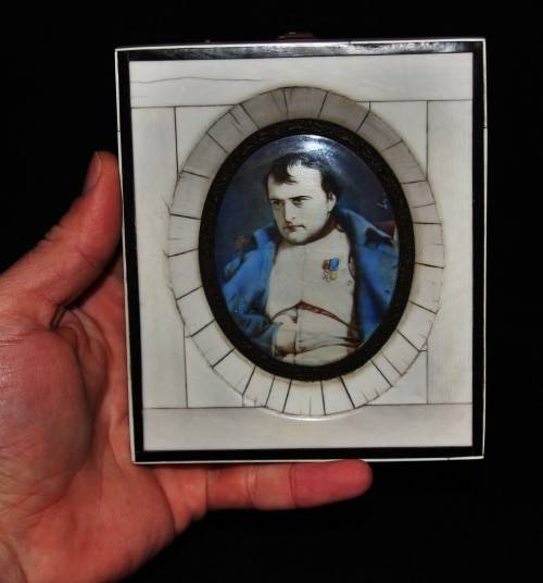 *NAPOLEON* SCARCE 19TH CENTURY SIGNED MINIATURE PAINTING OF NAPOLEON IN BONE FRAME - VALUE R8800