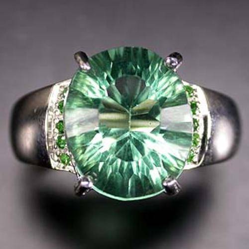 *Natural Gem* AAA Fluorite & Tsavorite Garnet.(14k White Gold Plate)925 Sterling Silver,Breathtaking