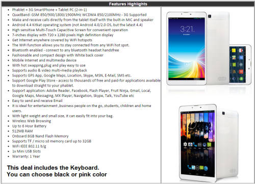 *New* 7 inch 3G Tablet with the Keyboard. 8GB. Android 4.4. WIFI. Google Play
