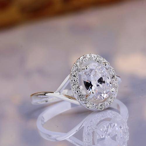 *New* 925 Sterling silver plated clear Austrian crystal Halo ring - Size 7