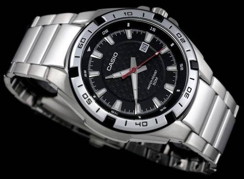 Time to upgrade to a cool, modern look. This Casio watch has a black dial set in a sleek stainless steel case. The stainless steel band is finished with a fold over clasp. It's a great casual accessory that's versatile enough to wear every day.