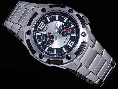 Upgrade to style and sophistication with this elegant Casio watch. Boasting a stunning 40mm Stainless steel case matched with a secure Resin band, this timepiece makes an ideal accessory for any affair. The Silver & Black dial with Black sub-dials sits under a mineral crystal, which combines a stylish look and an easy-to-read display. The sleek, subtle design instils this watch with an unmistakable sense of luxury that cannot be matched. Additional features include luminous minute and second hand markers, water resistant to 100 meters/330 feet (10 ATM).