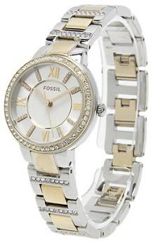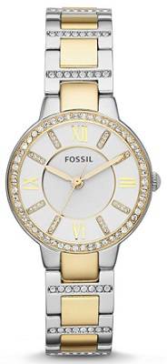 Characteristic of Fossils signature elegance and style, this classic timepiece provides much-needed flair for any affair. Composed of a 30 mm stainless-steel case and a gold and silver stainless-steel band and jewellery clasp, this classy watch incorporates durability into luxury to produce an unparalleled timekeeping accessory. The analog display and white dial are protected by a sturdy mineral crystal, and is powered by a high-quality Japanese-quartz movement. All of this is secured by a 50 meter water resistance, proving the watch to be a reliable accessory to portray panache with ease. Additional features include crystals surrounding the bezel, Roman numeral display, and measures seconds.