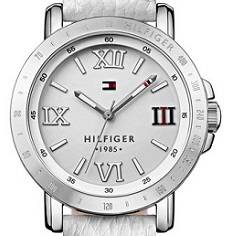 A definite expression of cultivated fashion, this brilliant Tommy Hilfiger timepiece is the perfect accessory for those with a passion for elegance and style. This watch features a cultivated silver stainless steel case and white leather band, demonstrating the sophisticated spirit that Tommy Hilfiger is known for. This supreme timepiece integrates classic luxury watch design with modern characteristics, producing a cutting-edge timepiece with innovative specifications.