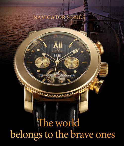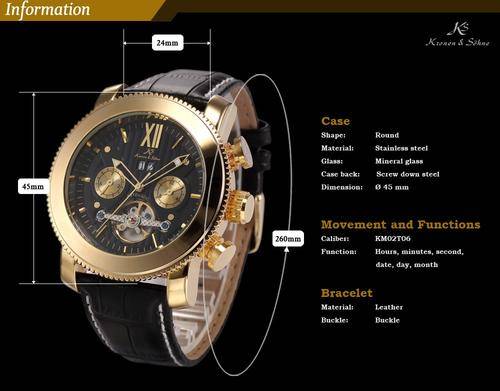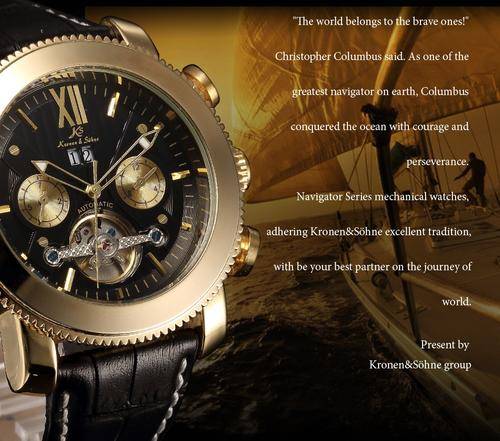 ## NEW ARRIVAL ## Kronen & Sohne Men's Silver Stainless Steel Black Leather Automatic Watch