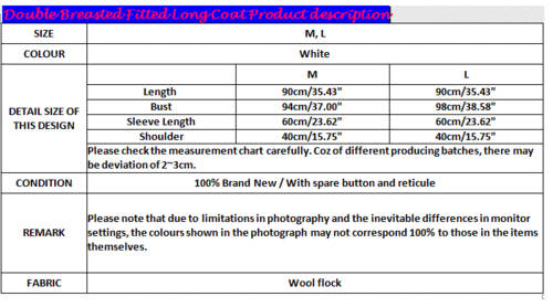 ***New Arrivals***Double Breasted Very Stylish Fitted Long Coat! White,Wine Red, Black (M,L)