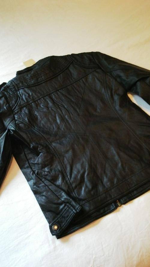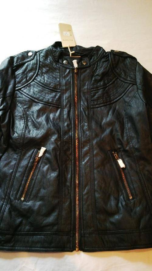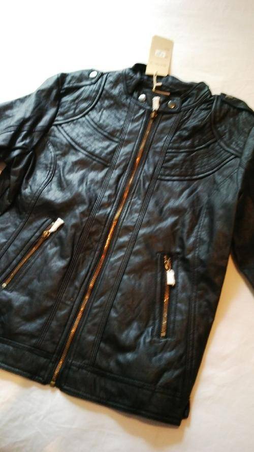 Stunning Ladies BLACK Leather Look Jacket with Funky Design, full front zip, has a great design to it, beautiful piece...