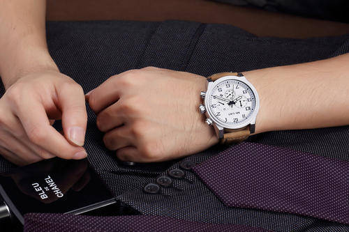 This sporty watch features chronograph movement. This is the watch you'll want to wear with everything, and it's the perfect way to stay in style. All dials function, and top dial has 360 degree swing function.