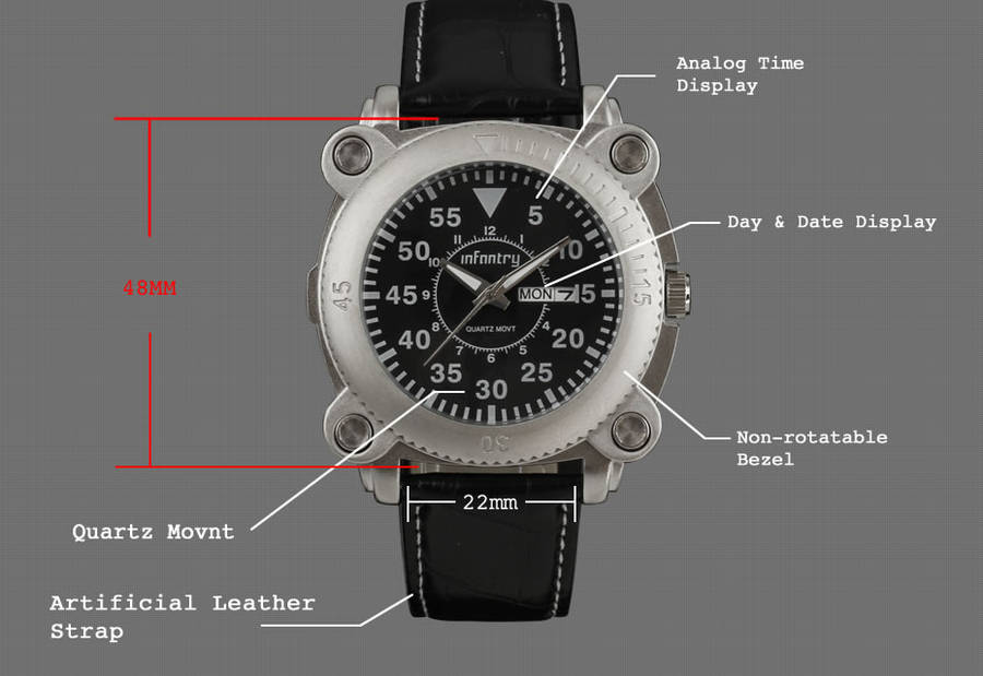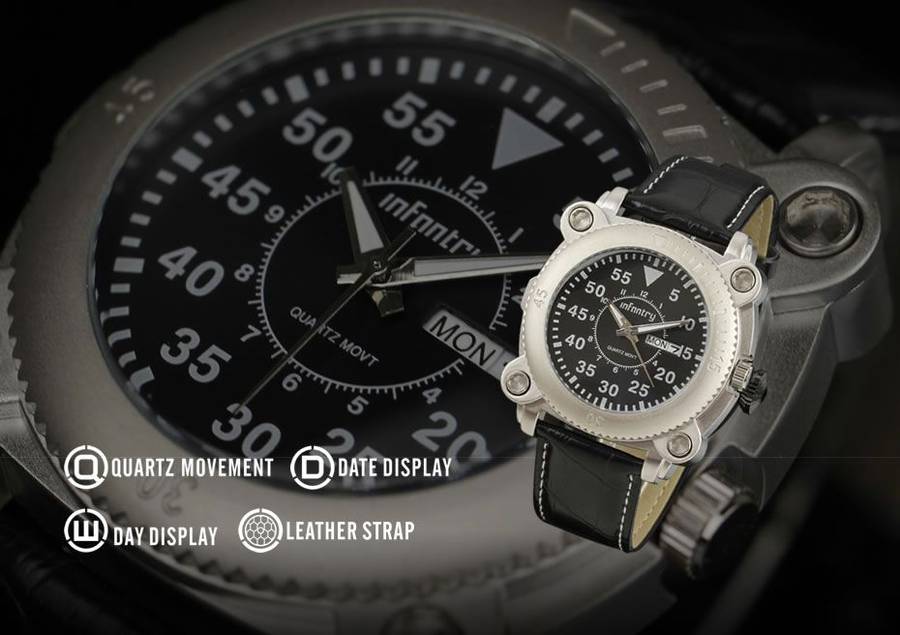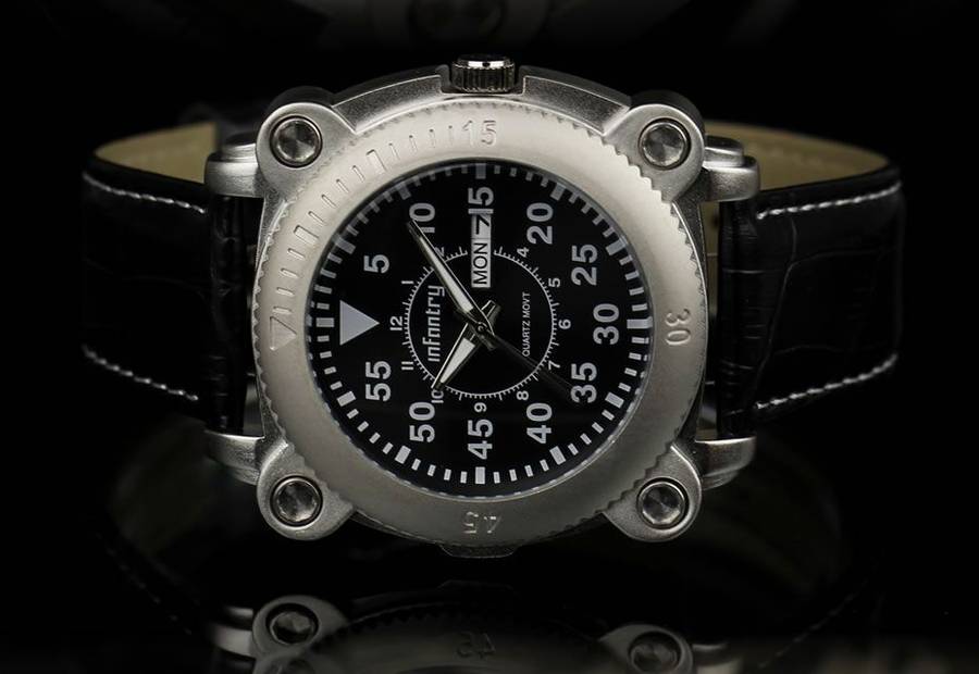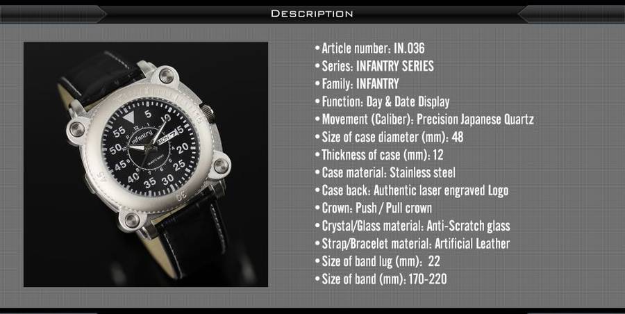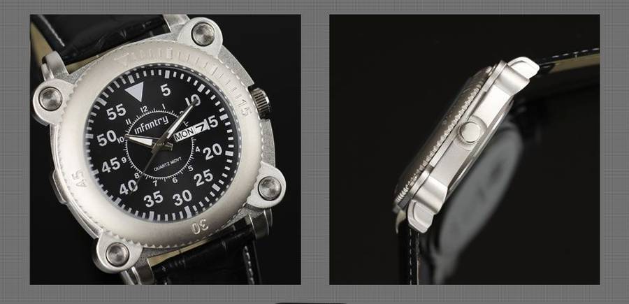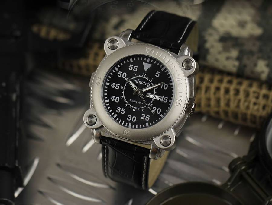 ***New INFANTRY Mens Wrist Watch Date & Day Quartz US Army black leather Strap