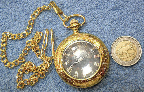 6. Classical black dial ,gold Roman numerals and red Arabic numerals