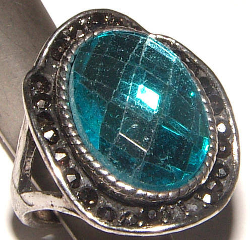 SURROUNDED BY ROUND MARCASITE CRYSTALS ELECTROPLATED SILVER WIDTH AT TOP - 25mm RING SIZE - 8.75 / R RING IS NOT ADJUSTABLE