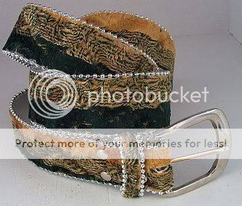 *NEW* STUNNING BEIGE/GREEN FUR BELT WITH SILVER BEAD EDGING - 115cm