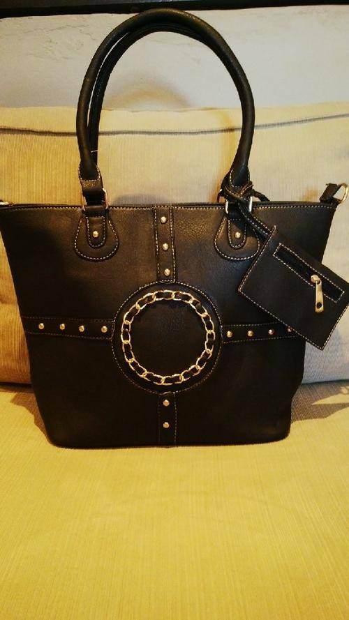 Stunning Ladies 2pc BLACK PU Leather Handbag, has great detail and design on the front, comes with a coin wallet or this can be used for anything you like, Beautiful Piece!!!