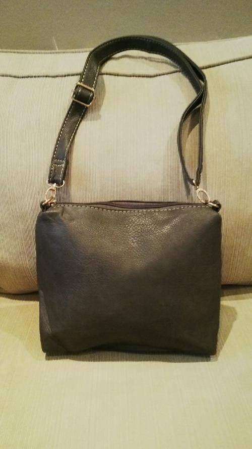 Stunning Ladies GREY/BEIGE PU Leather Handbag or Shoulder Bag With Beautiful Detail & Design, the centre has a gold like studs embedded into the design, can be worn on your shoulder or carried Sling style, huge space for just about anything and everything, comes with a coin wallet or can be used for anything you like, also a scarf and a second smaller sling bag, the strap is detachable and can be worn on both bags, BEAUTIFUL PIECE...
