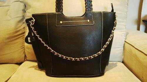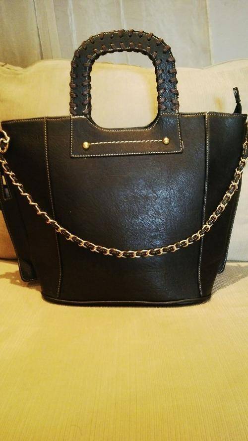 Stunning Ladies BLACK/GOLD PU Leather Handbag or Shoulder Bag With Beautiful Detail & Design, the strap has a gold like chain embedded into the straps, can be worn on your shoulder or carried like a suitcase, huge space for just about anything and everything, BEAUTIFUL PIECE...