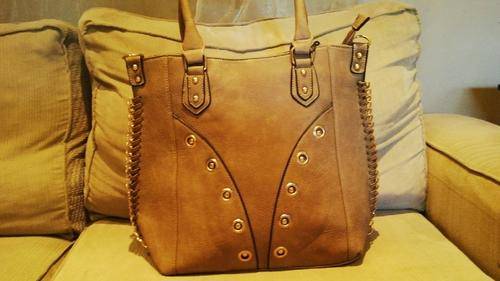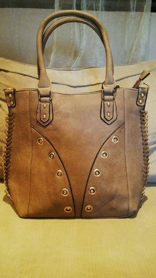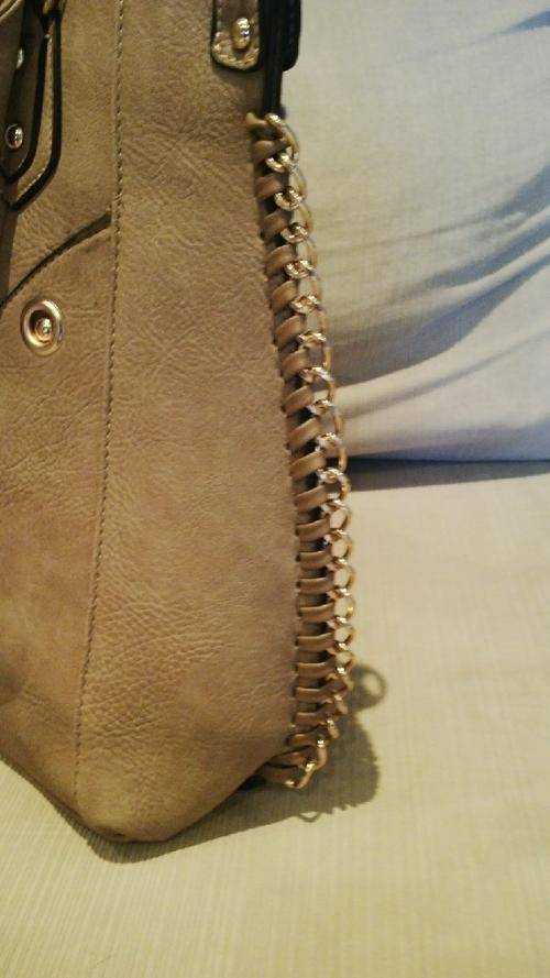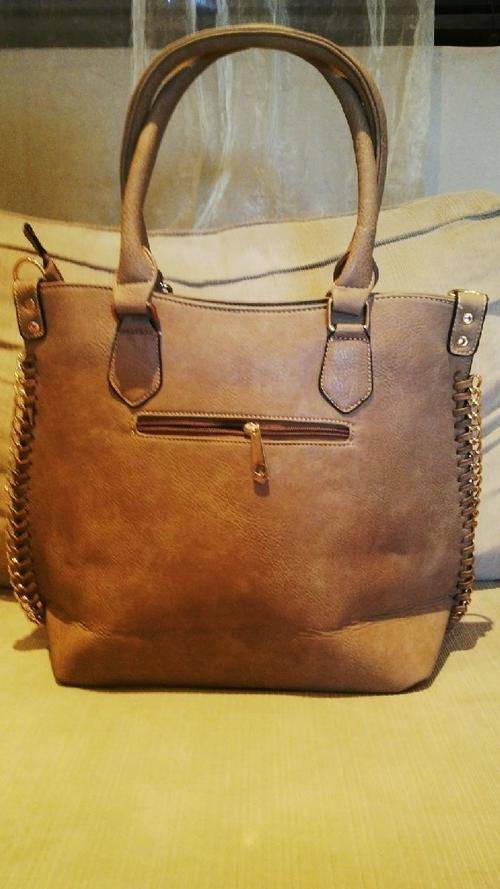 Stunning Ladies LIGHT BROWN/GOLD PU Leather Handbag With Beautiful Detail & Design, the corners of the bag has a gold like chain embedded into the sides, BEAUTIFUL PIECE...