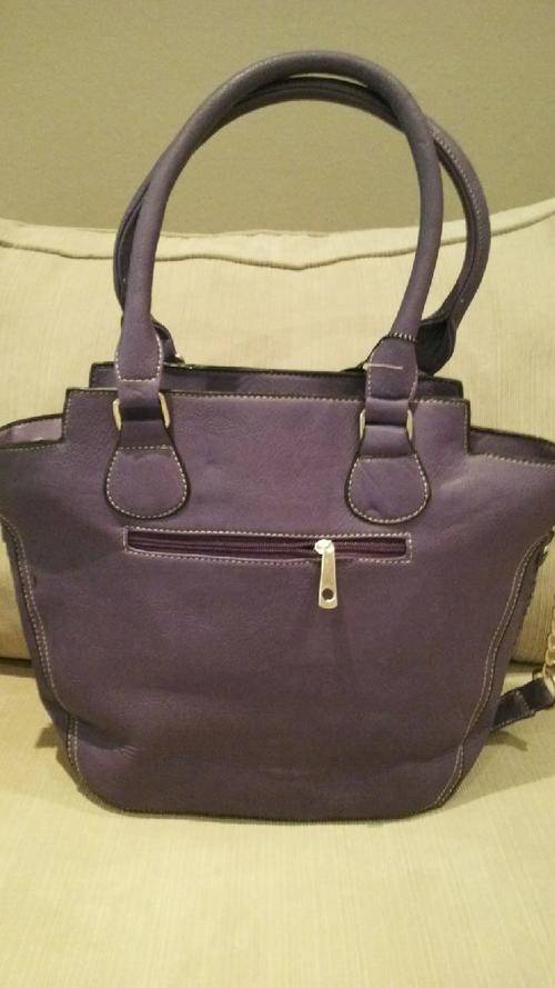 Stunning Ladies PURPLE/GOLD PU Leather Handbag or Shoulder Bag With Beautiful Detail & Design, the strap has a gold like chain embedded into the straps, can be worn on your shoulder or carried Sling style, huge space for just about anything and everything, BEAUTIFUL PIECE...