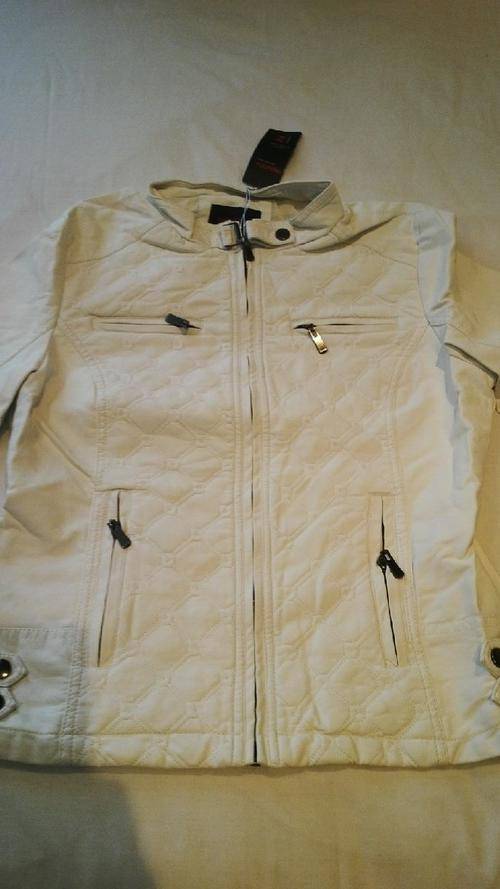 NEW DESIGN, Stunning Ladies WHITE Leather Look Jacket with Funky Design, full front zip, has a great design to it, beautiful piece... SPECIAL OFFER AVAILABLE FOR THIS WEEKEND, ONLY THIS COLOUR AND STYLE, DONT MISS OUT, LIMITED QUANTITY...