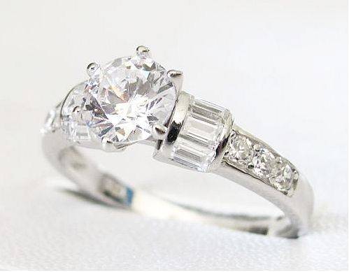 **NEW!!!**SUPERB SOLITAIRE BAGUETTE CZ ACCENTED .925 SOLID STERLING SILVER ENGAGEMENT RING