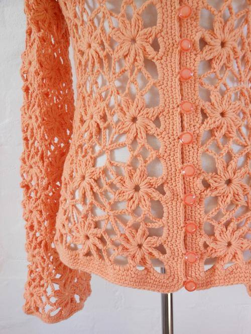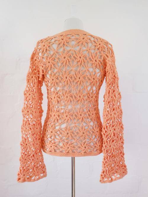 Stunning and unique authentic vintage crochet knit floral cardigan with flared sleeves. Really something different and special. Very good condition. Size large.