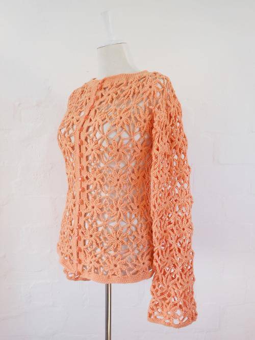 *NEW YEAR SALE - 50% OFF* VINTAGE CROCHET ORANGE KNITTED SHEER CHUNKY JERSEY CARDIGAN - SIZE LARGE