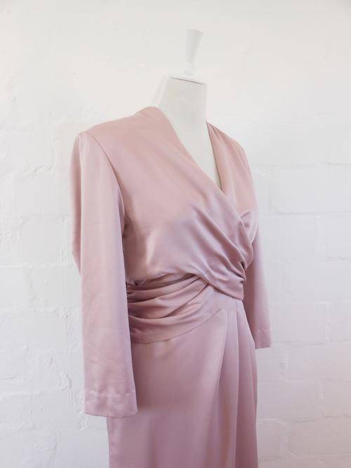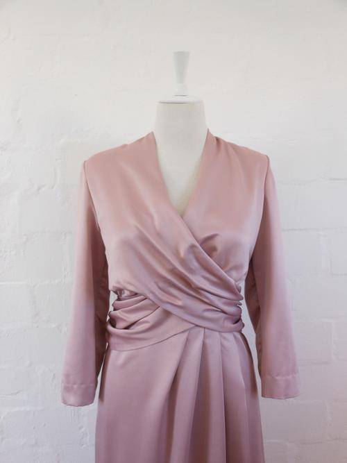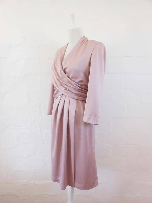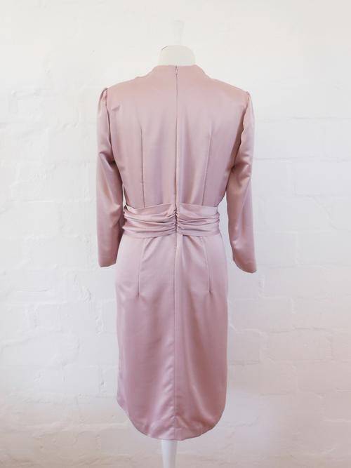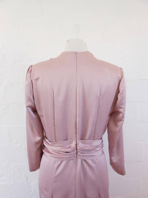 *NEW YEAR SALE - 66% OFF* VINTAGE CROSS OVER PINK LONG SLEEVE COCKTAIL EVENING DRESS - SIZE 12