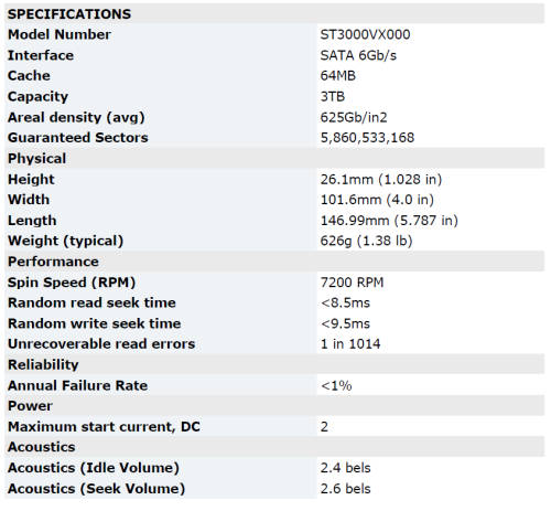 Seagate Barracuda ST3000VX000 SV35.5 Series 3TB 7200RPM SATA III 64MB Cache Internal Hard Drive