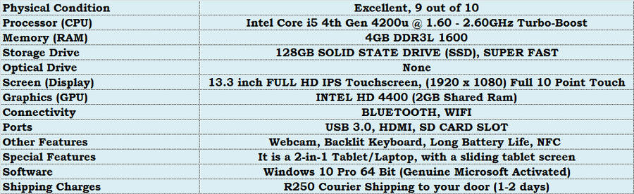 *One-of-a-Kind* Sony VAIO DUO 13 Slider Tablet-Ultrabook. 13.3" Full HD Touchscreen, SSD, 4th Gen i5