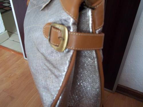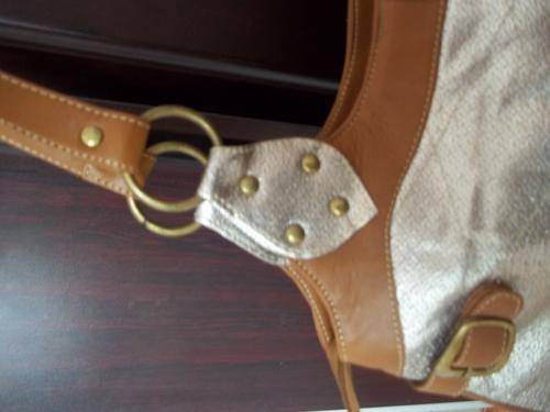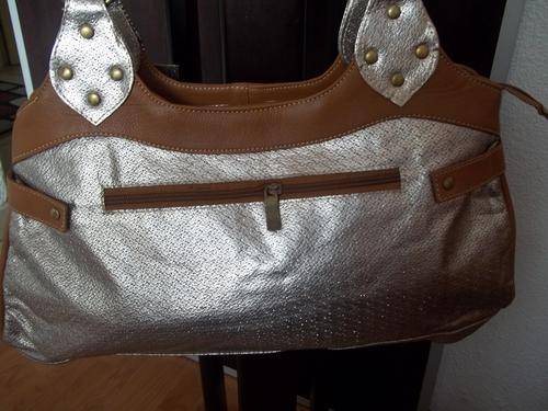 Stunning 100% Genuine leather Hand Bag in a GORGEOUS shimmering SILVER & BROWN. Invest in leather,the smart choice.