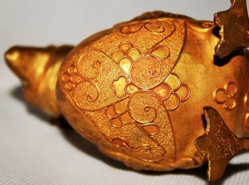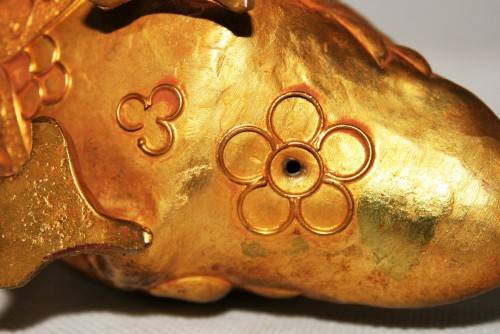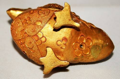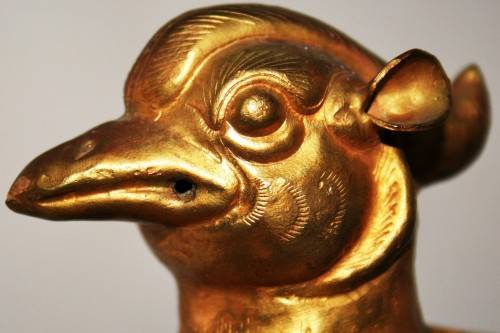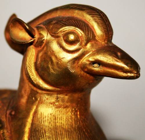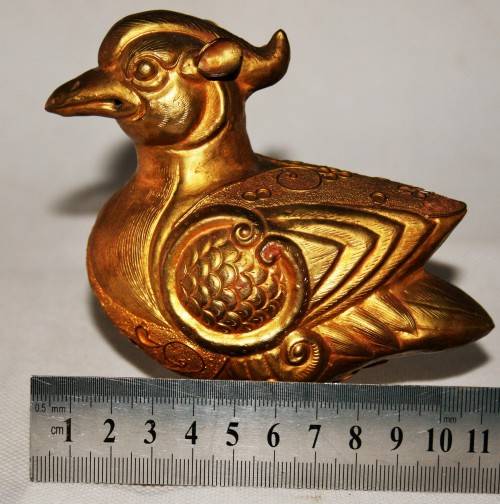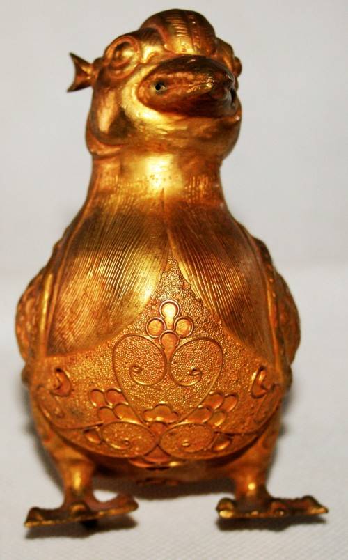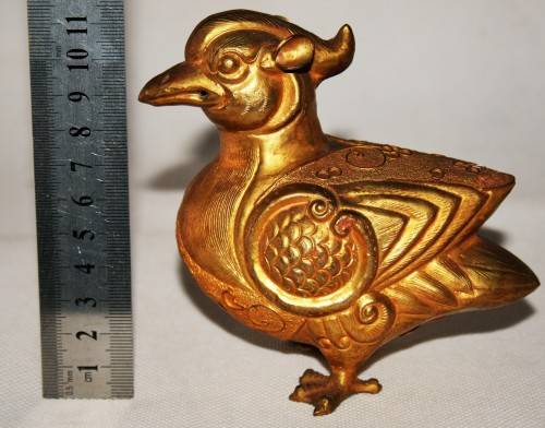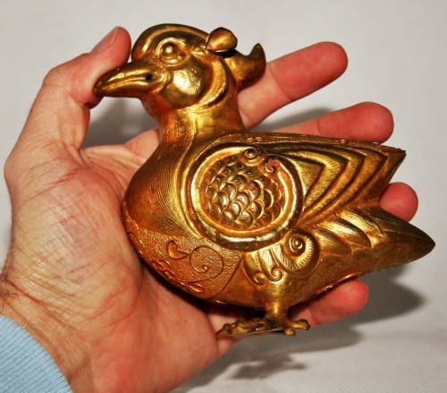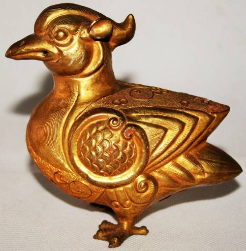 *ORIENTAL*AN OLD, VERY UNUSUAL ORIENTAL GOLD TONE METAL ORNAMENT OF A BIRD ! STRIKINGLY BEAUTIFUL !